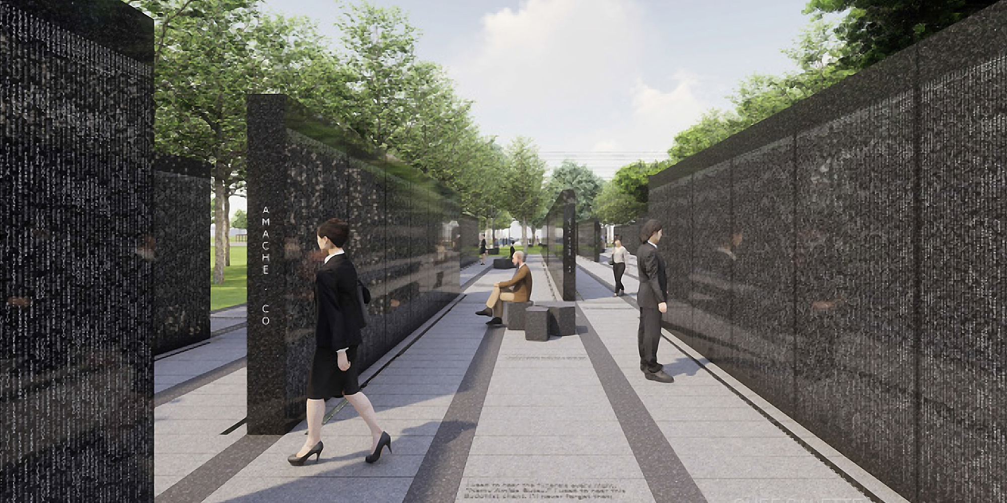 The WWII Monument will be constructed at Columbia Park and will consist of black granite veneer walls engraved with the names of approximately 160,000 individuals held in wartime camps across the United States. The monument will include interpretive educational panels, access pathways, van-accessible parking, and restroom facilities. This project will be the first of its kind in the United States.